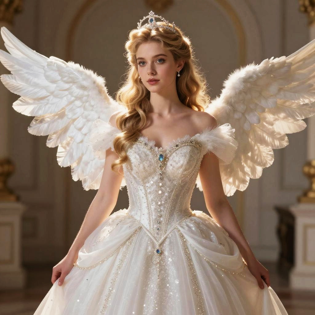 Royal portrait generator free, fantasy royal portrait of a monarch with ethereal glowing crown and mystical robes made of shimmering silk, surrounded by magical elements like floating lanterns and enchanted flora in a dimly lit throne room