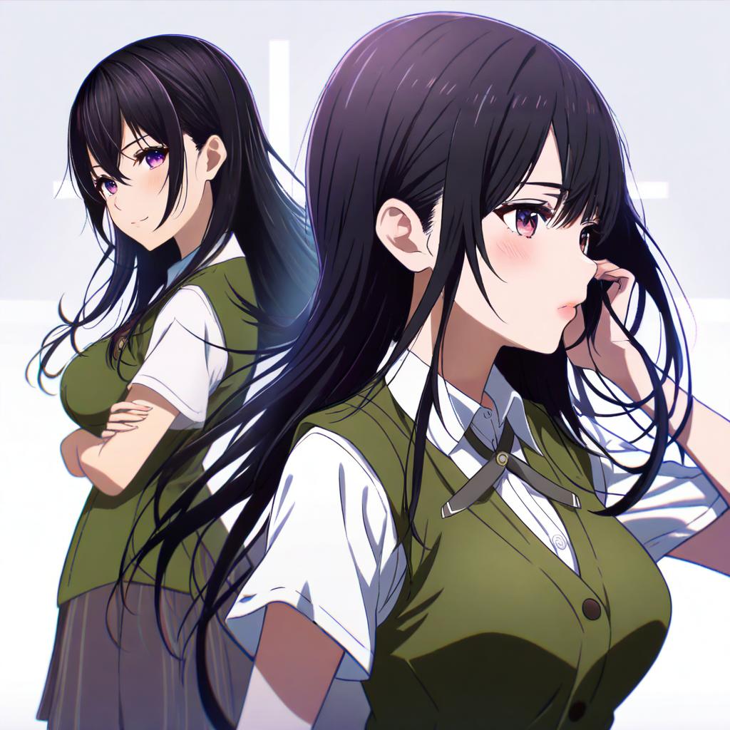 Akebi komichi, akebi-chan no serafuku, 1girl, blue eyes, long hair, black hair, serafuku, serafuku, roubai academy school uniform (old), pleated skirt, white shirt, long sleeves, black sailor collar, by artist noco (adamas), leet