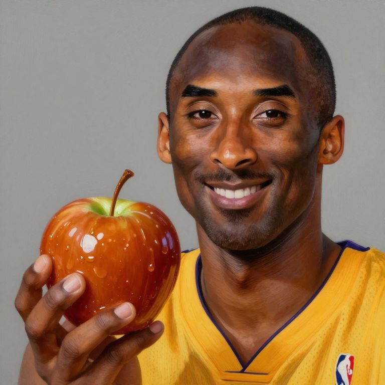 Caramel Apple a beautiful, flawless, perfectly detailed, and emotionally touching painting portrait of the late and great Kobe Bryant in exactly Tatusuki Fushimoto’s art style.,
