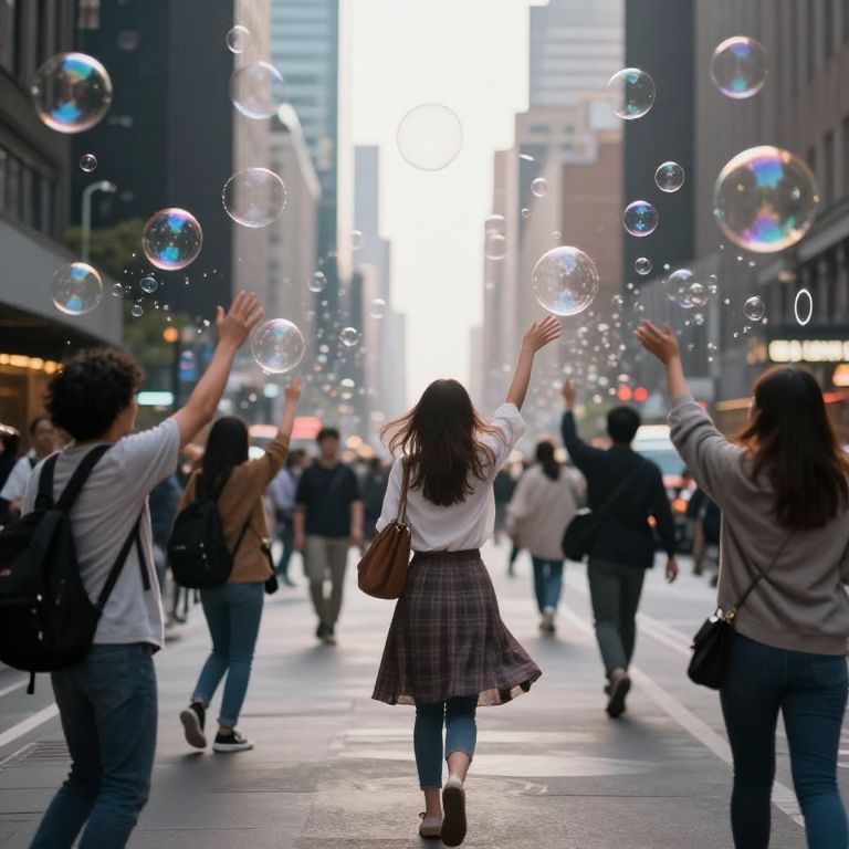 In a city where the air hums with the invisible symphony of life, citizens reach out to touch the fleeting, iridescent bubbles of sound, weaving a dance between the ephemeral and the eternal.