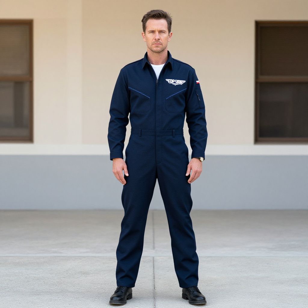 Top Gun Maverick Jumpsuit Costume, man in uniform standing in front of a building