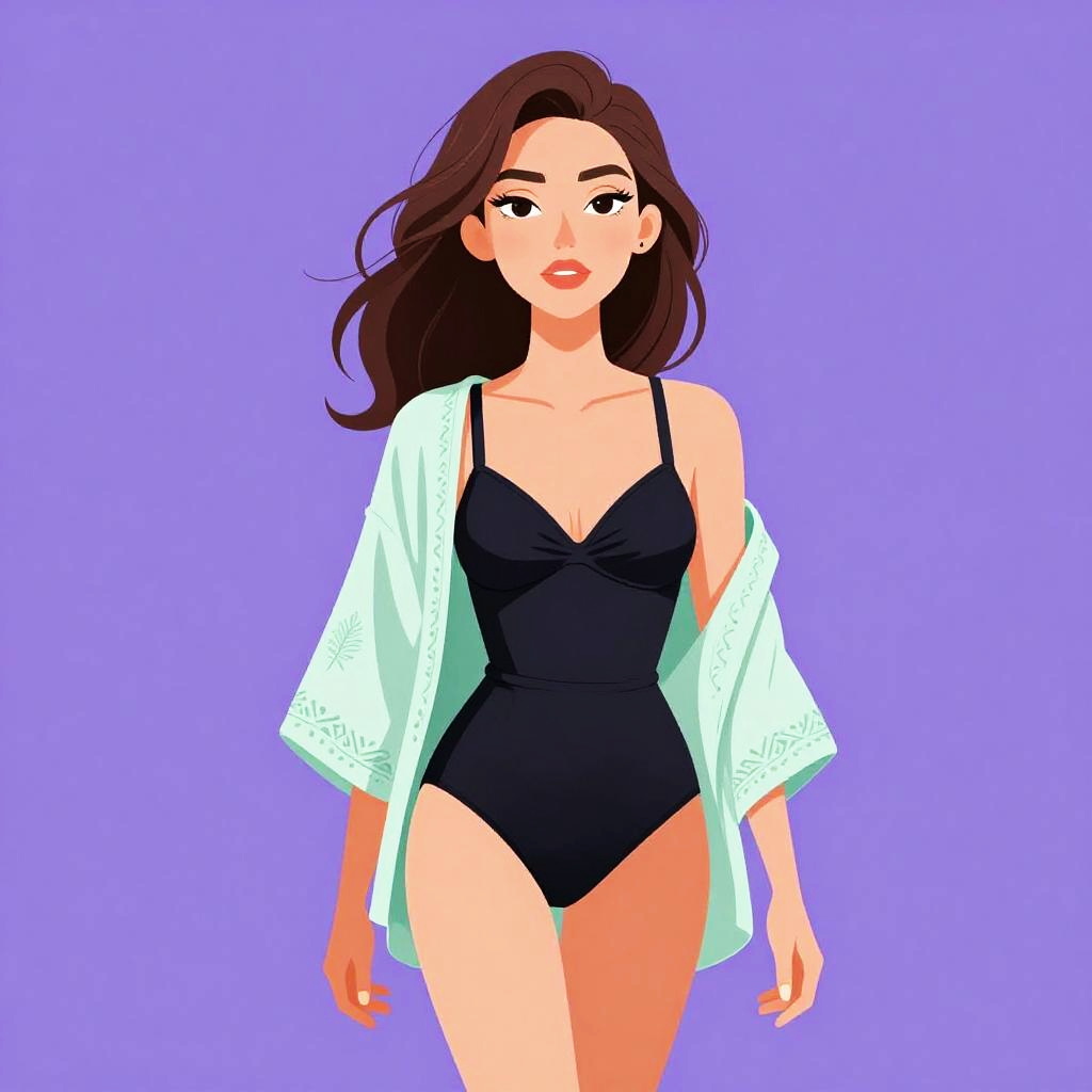 Woman with pretty face and pretty hair. Woman, chic, black spaghetti strap top with intricate gold and silver paisley designs, scoop neckline, fitted silhouette, paired with skinny beige trousers, low-rise with slight stretch, subtle textured fabric, accessorized with multiple thin bangles on one wrist. --sref 1461