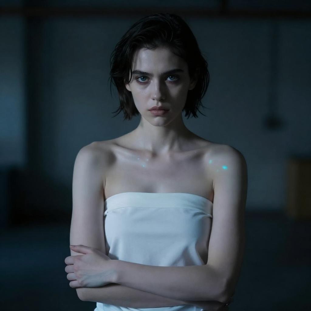 Digital artwork of a person with short brown hair, partially obscured by a transparent, glowing blue and white sphere. The background features a dark blue interface with digital readouts and graphs. The person's expression is serious, and the sphere emits a bright, energetic light. The interface elements and glowing sphere create a futuristic, high-tech atmosphere.