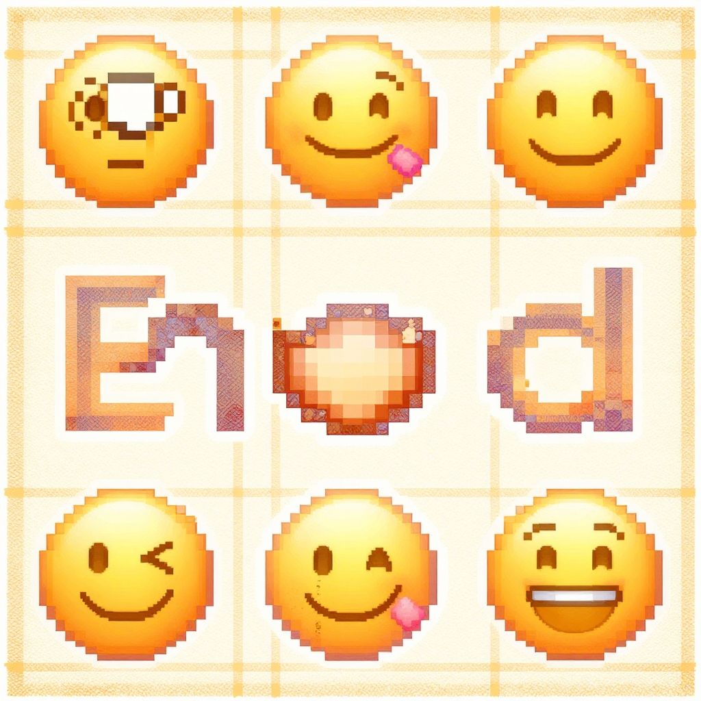 Emojify text depicted as a mosaic of tiny emojis forming readable words, pixel art style, cheerful and detailed, warm pastel palette with subtle shadows and highlights