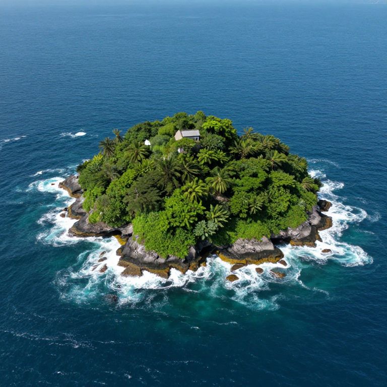 An island whispers the rhythm of life and death, its verdant surface a fleeting breath above the abyss, where the ebb and flow of tides mirror the eternal dance of existence.