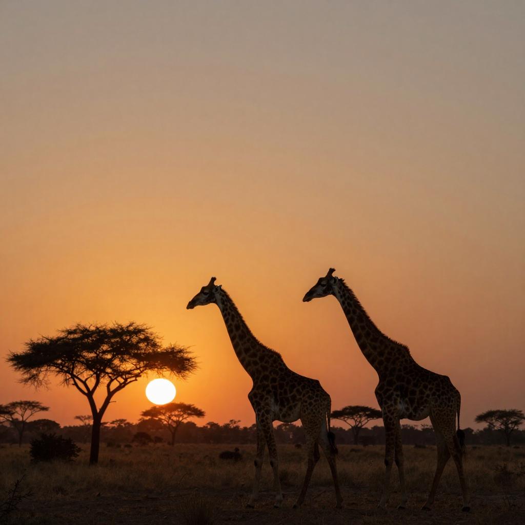 Serene Savanna Sunset with Giraffes