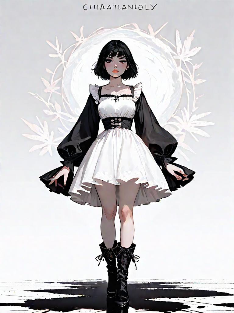 Full body, 1girl, dark_fantasy, nighttime, big boobs, fog, night mist, Gothic corset bodycon dress, emerald green silk, high collar, lace overlay, fitted silhouette, dramatic puff sleeves, layered tulle skirt, accessorized with black lace gloves, ankle strap heels, silver choker necklace.