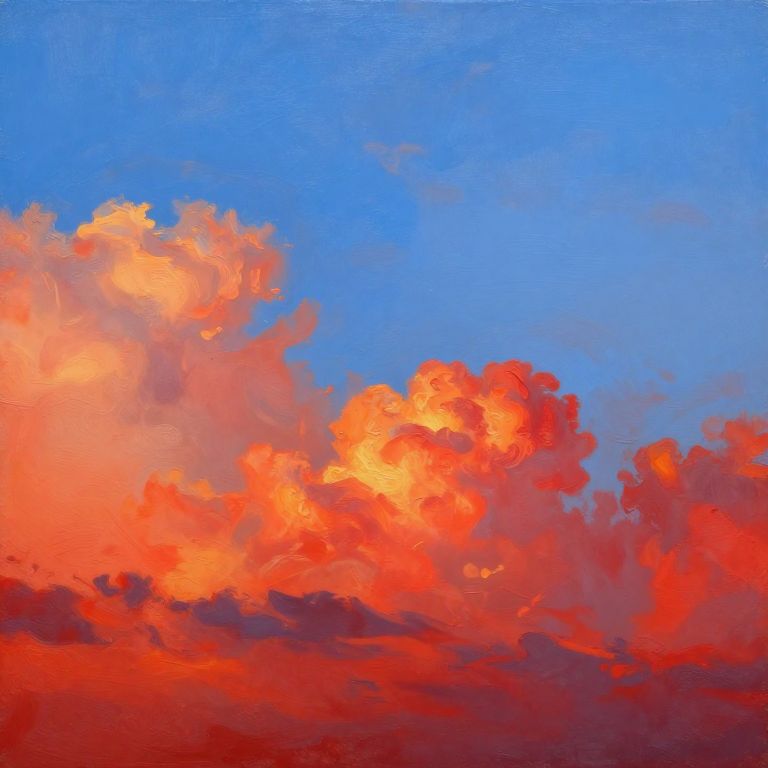 Casting Smooth transition of heaven and hell skies, fire red sky and blue clear sky, in the style of oil paint,