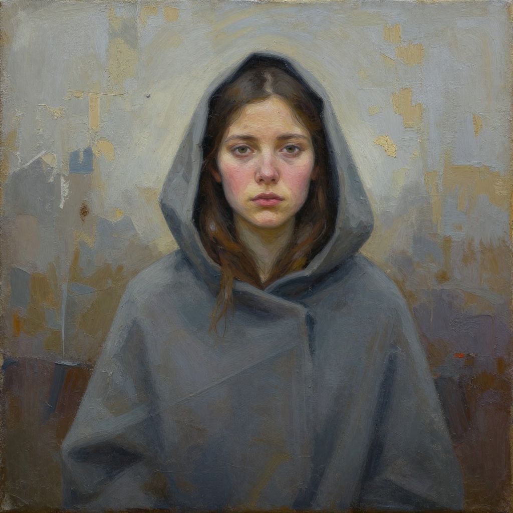 A surreal, abstract landscape painting featuring a beautiful woman's portrait, with vibrant colors, visible brush strokes, and a meditative, evocative atmosphere.