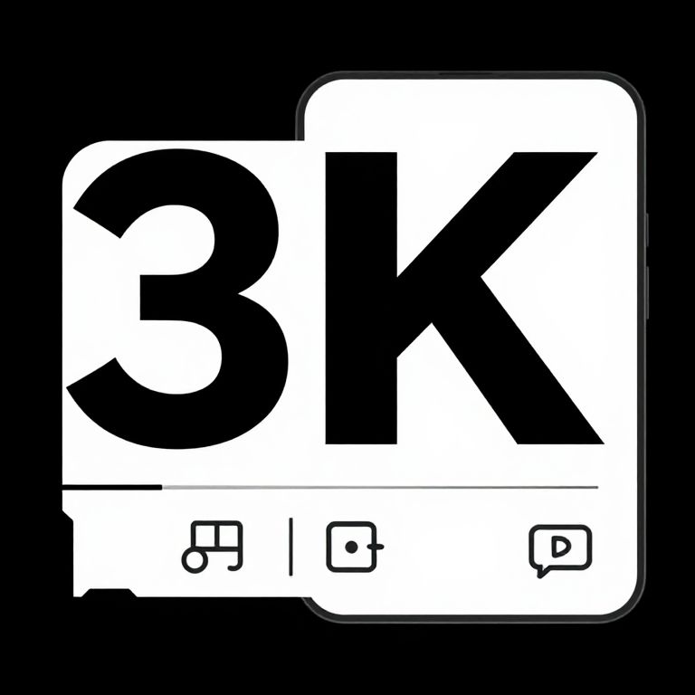 This is a digital graphic image featuring a bold, black, uppercase "3K" in the center. The letters are set against a white rectangular background with a thick black border. At the bottom of the rectangle, there are two small, black squares and a thin black line dividing them. The overall style is minimalist and modern, with high contrast between the black and white elements, creating a striking visual impact. The background is solid black, making the white rectangle and black text stand out prominently.