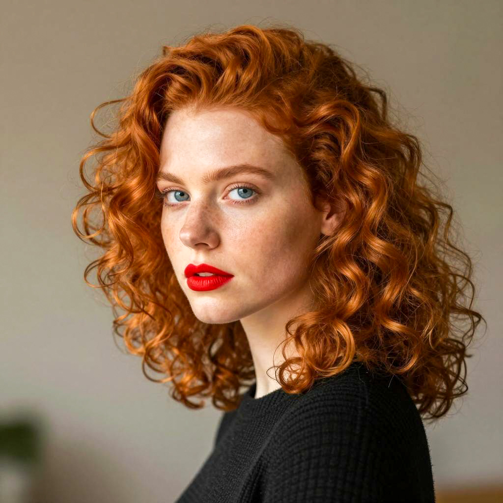 Elegant Portrait of a Redhead with Peony