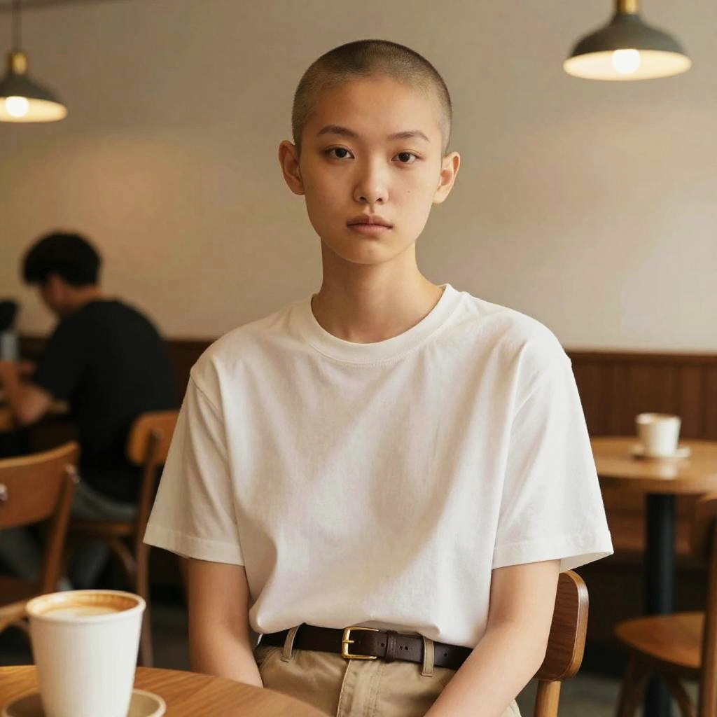 Shaved Head Female Artist Portrait