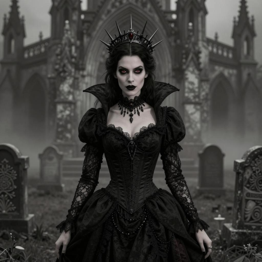 Gothic Sorceress in an Eerie Graveyard