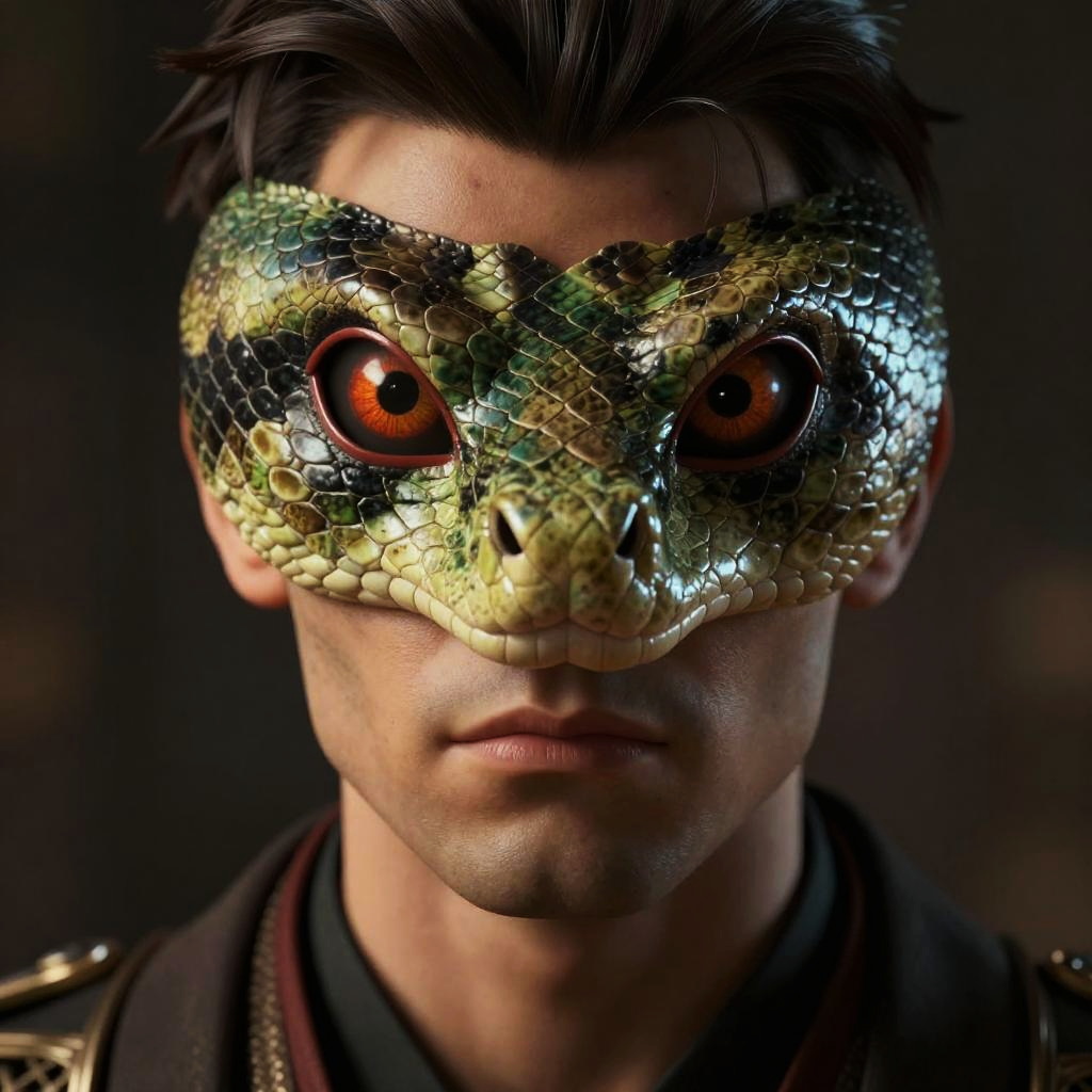 Hyperrealistic Actor with Snake Mask