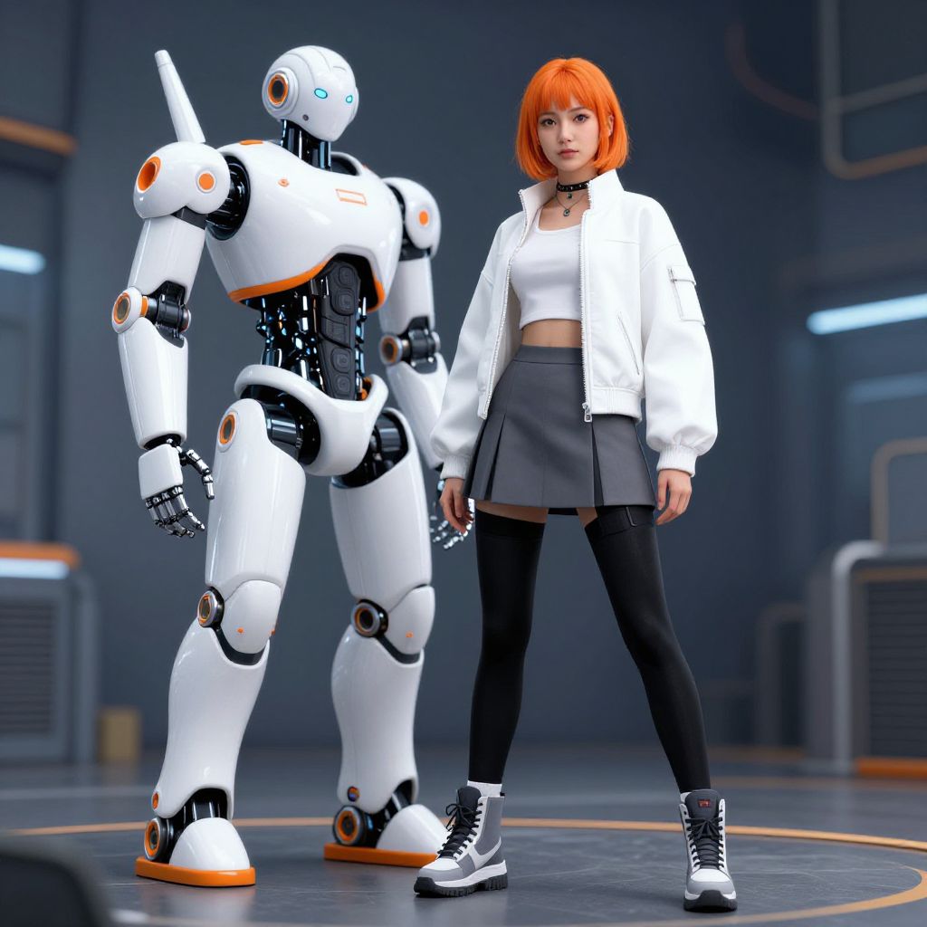 Edgy street looks in a futuristic city square, solar panels on buildings, a young model in combat boots and asymmetrical layers, digital graffiti on walls, drones hovering in the background, high-tech street vibe, dystopian realism.