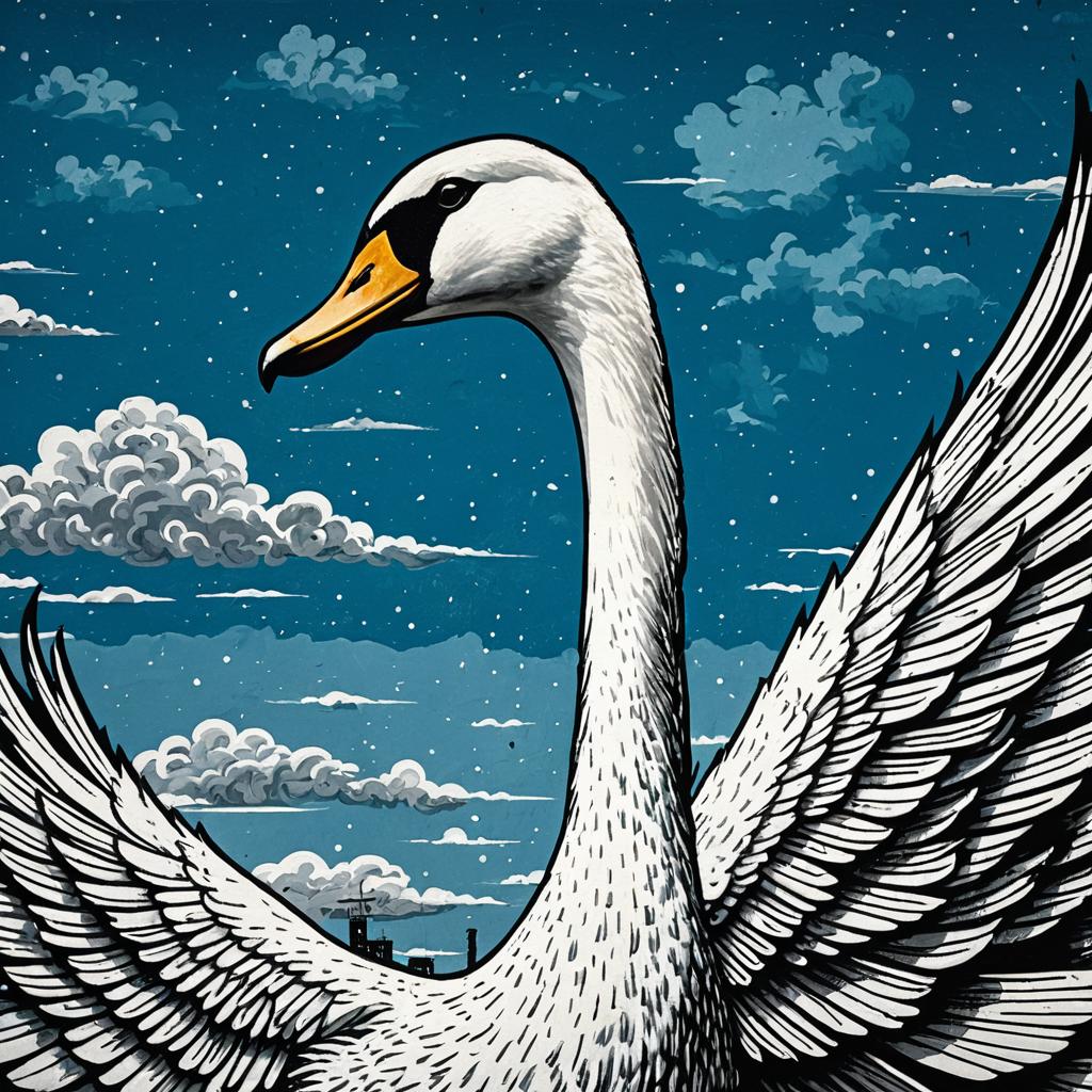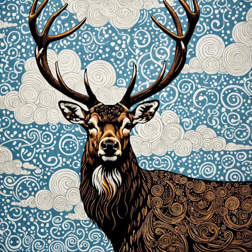 Hummingbird in the style of illusory wallpaper portraits with intricate woodcut designs, inspired by Alphonse Mucha. Captured in a close-up view with detailed skies in the background, the composition blends classic elegance with street art influences for an intense, visually engaging effect.