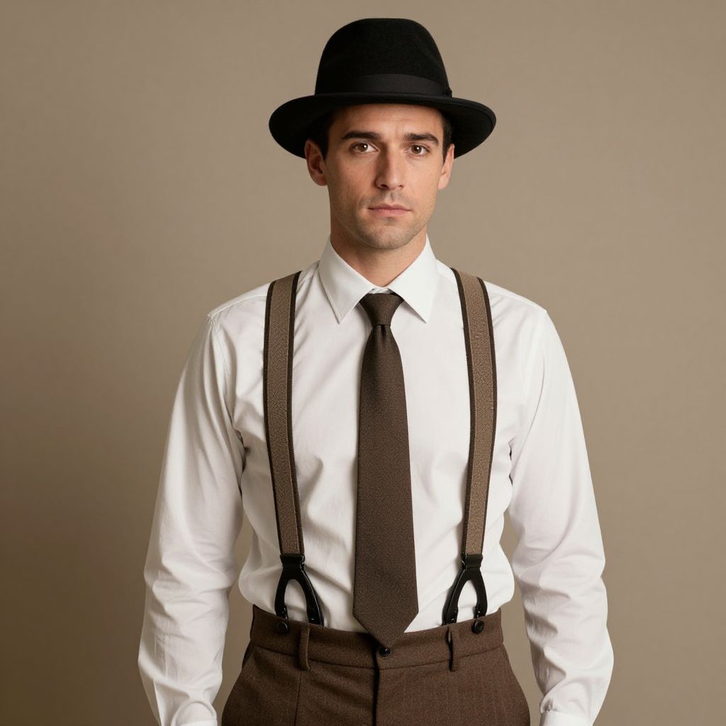 Retro Man Clothing Costume, man wearing a hat and suspenders and a tie