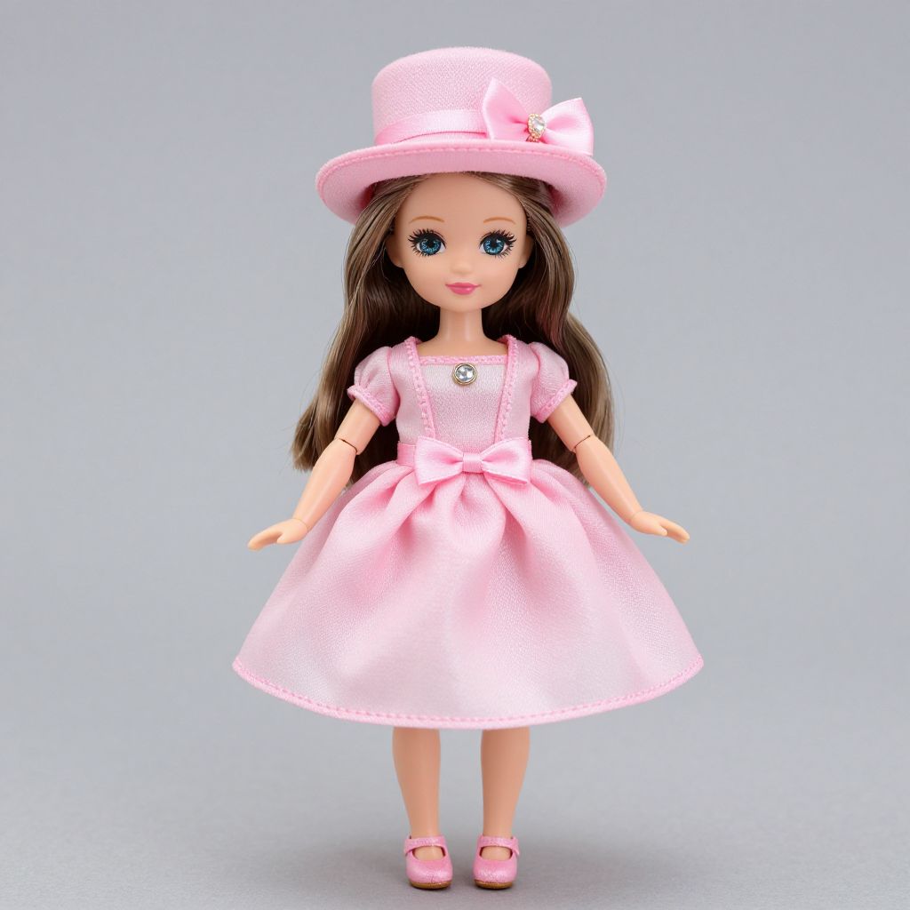 Pink Doll Costume, doll dressed in a pink dress and a pink hat