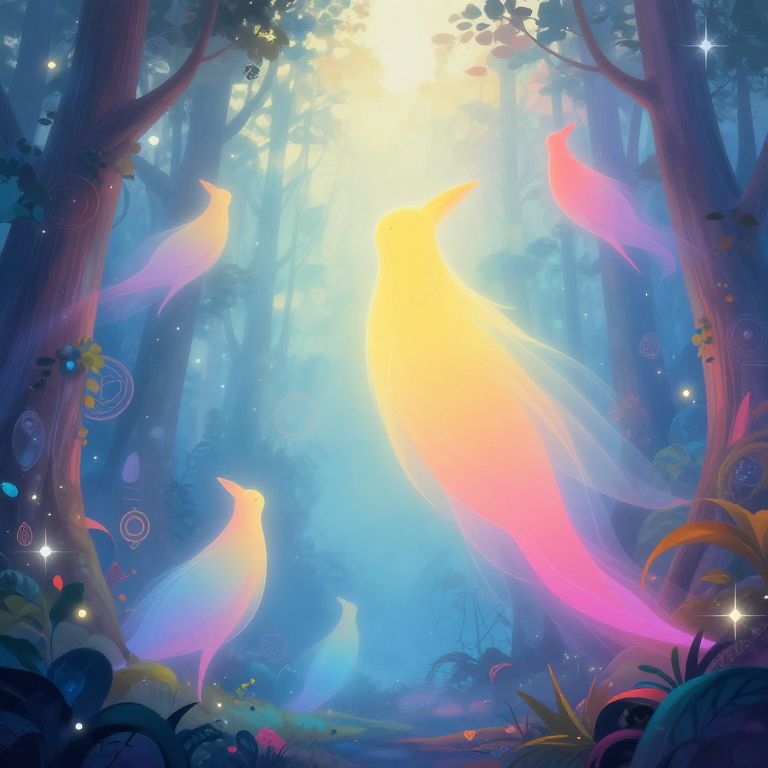 Stable diffusion art, a surreal dreamscape blending vibrant colors and smooth gradients, ethereal creatures floating amidst a misty forest, soft glowing lights and delicate geometric patterns creating a mystical atmosphere, hyper-detailed digital painting style.