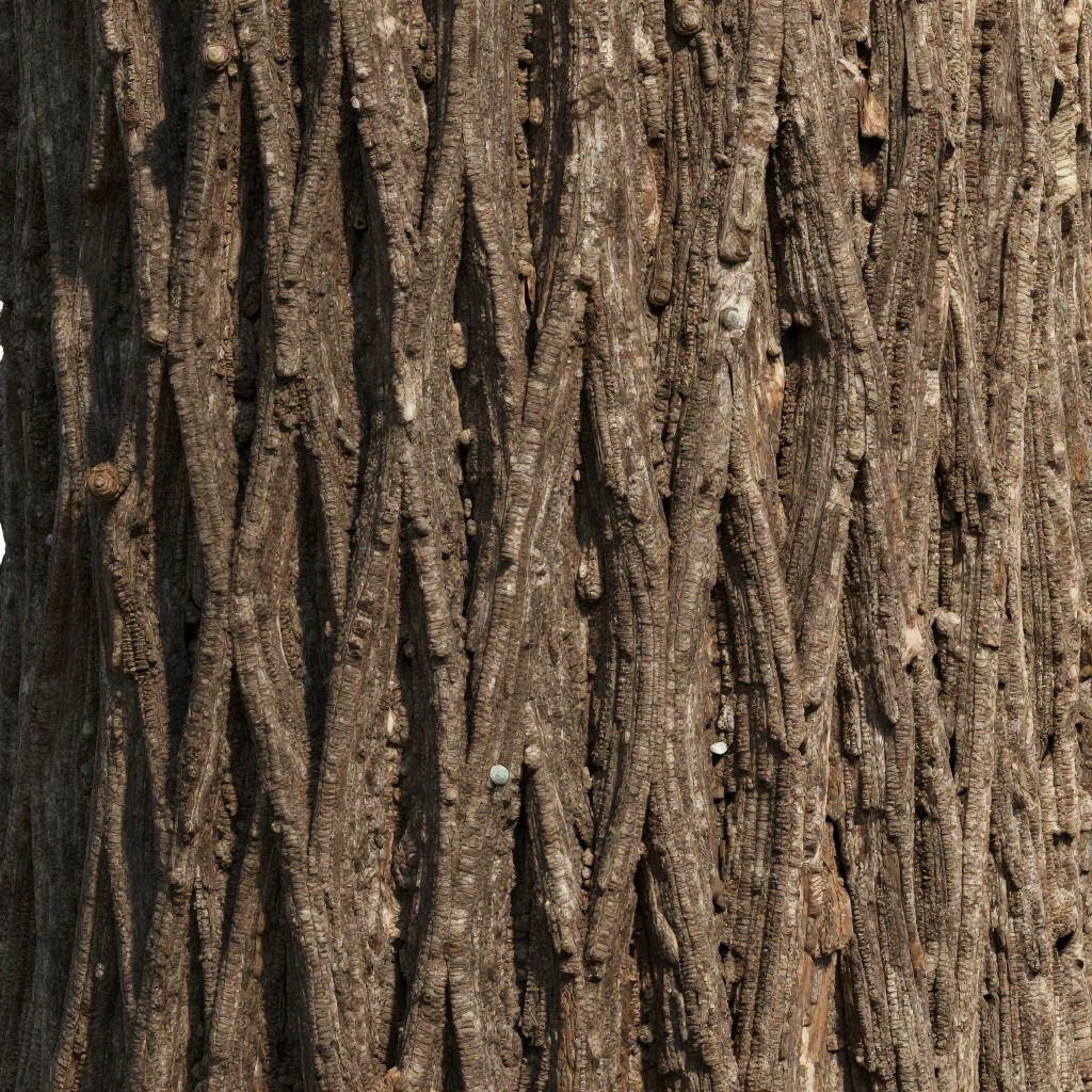 Seamless tree texture covering an entire surface, detailed bark patterns with rough grooves and natural color variations, high resolution, suitable for 3D modeling and game environments, realistic lighting and shading