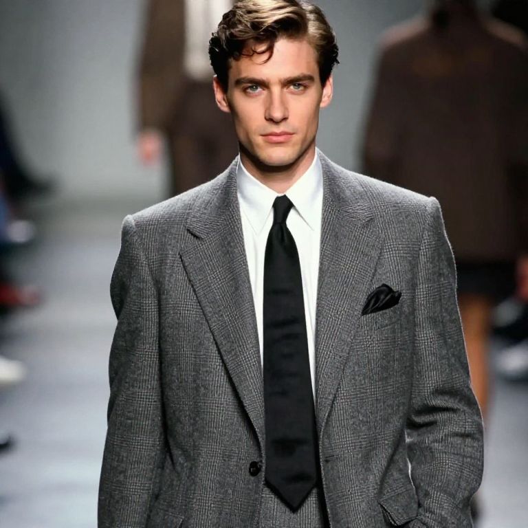 "Thread the man in the photo but a balenciaga runway model, 90s high fashion, sharp cheekbones, slim, somber expression,"