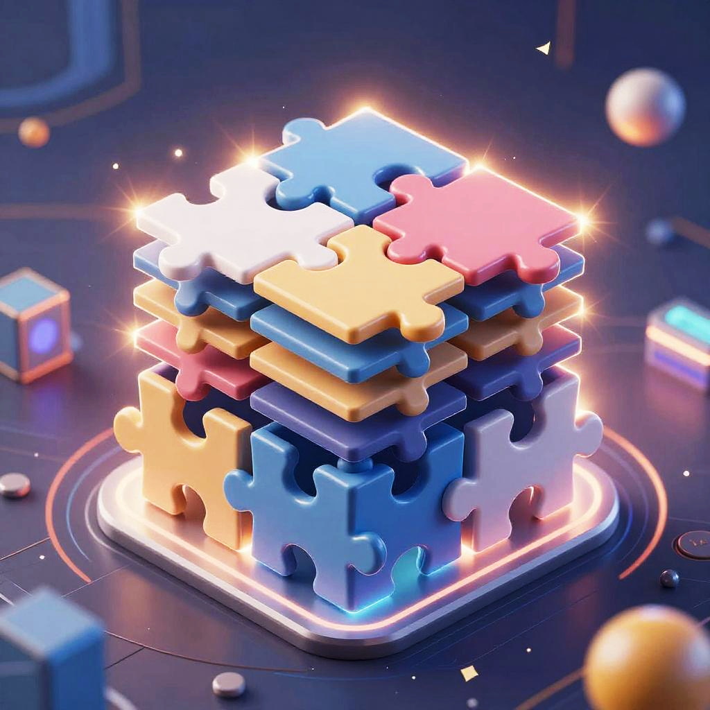 Best extensions for Stable Diffusion portrayed as layered AI components visualized like puzzle pieces fitting perfectly, surrounded by radiant light effects and futuristic tech elements, dynamic and vivid