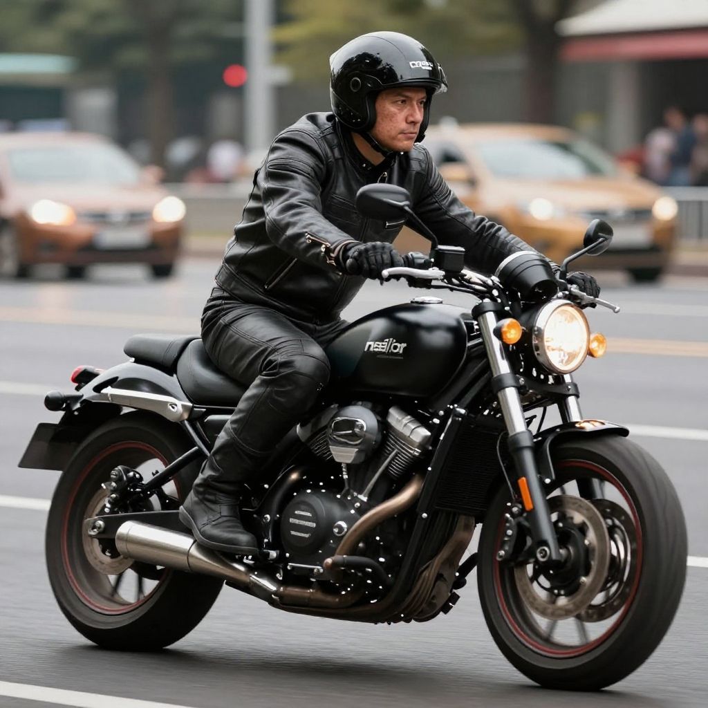 Merger_emad_oblivion, (riding a motorcycle:1.2) wearing (motorbike leathers:1.2), (riding a motorbike:1.2), (driving a motorbike:1.2), (motorcycle:1.1), traffic, leather trousers, leather jacket, motorcycle boots, leather gloves, bokeh, f1.4, 40mm, photorealistic, raw, 8k, textured skin, skin pores