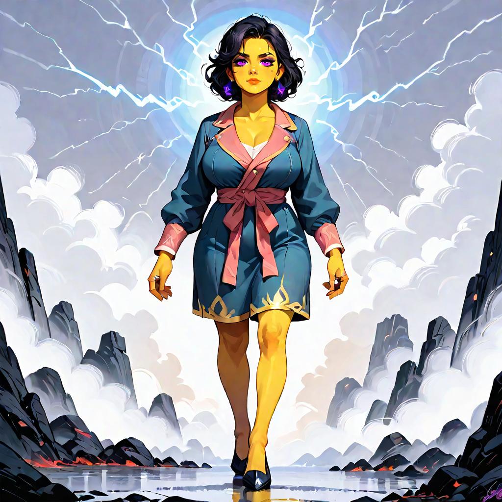 Score_9, score_8_up, score_7_up, score_6_up, high quality, masterpiece, 8k, highres, detailed, full body, (looking at viewer) :: solo, man, (mature:1.35), (adult:1.35), masculine (lightning elemental:1.2), (made of lightning), (bright yellow skin:1.2), standing, flying, storm clouds, Thunder, long face, (very tall) :: scary, menacing, dramatic shadows, dramatic shading, closed mouth :: detailed face :: medium hair, spiky hair, hair gel :: (purple eyes:1.1), ring eyes, slit pupils, detailed eyes, detailed face