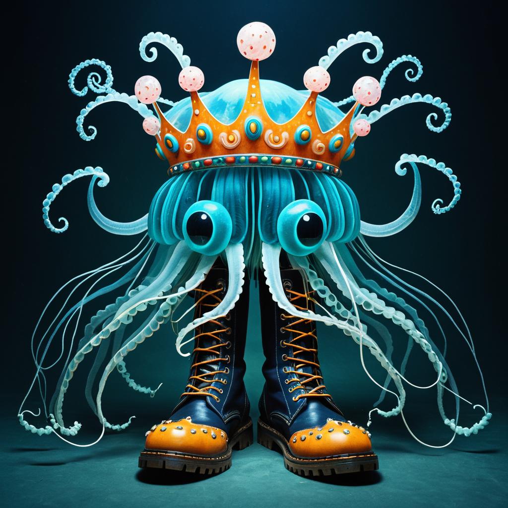 Surreal Jellyfish with Crown and Boots