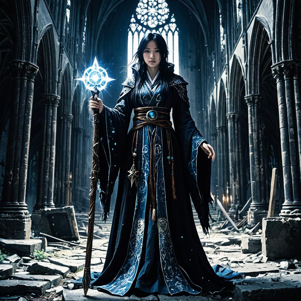 A towering muscular barbarian warrior stands on rocky terrain in a misty mountain pass. He is dressed in ragged animal pelts and heavy fur, showcasing a gritty and realistic anime style. The warrior grips a large jagged stone axe with both hands, exuding strength and readiness for battle against a backdrop of snow-covered peaks and dark cliffs.