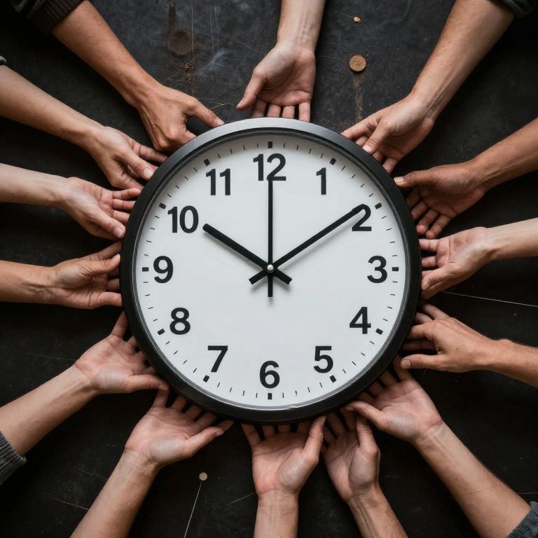 Amidst a cacophony of competing rhythms, a central clock stands as a paradoxical symbol of unity and disarray, its hands mirrored by outstretched arms—a visual embodiment of the fragmented yet interconnected dance of time and humanity.