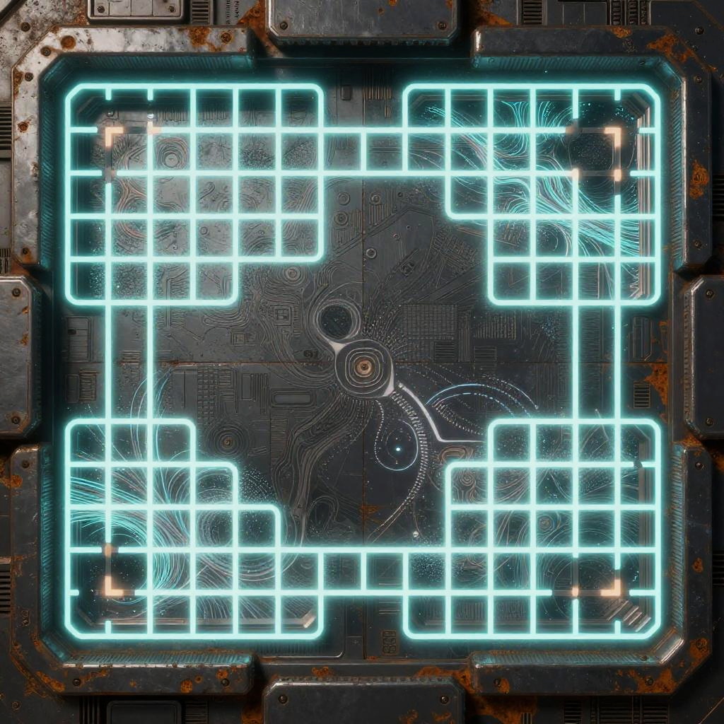 AI game texture generator producing sci-fi inspired textures for virtual environments, featuring glowing neon grids, rusty cyberpunk metal plating, and dynamic organic patterns with a mix of realism and abstract digital effects.