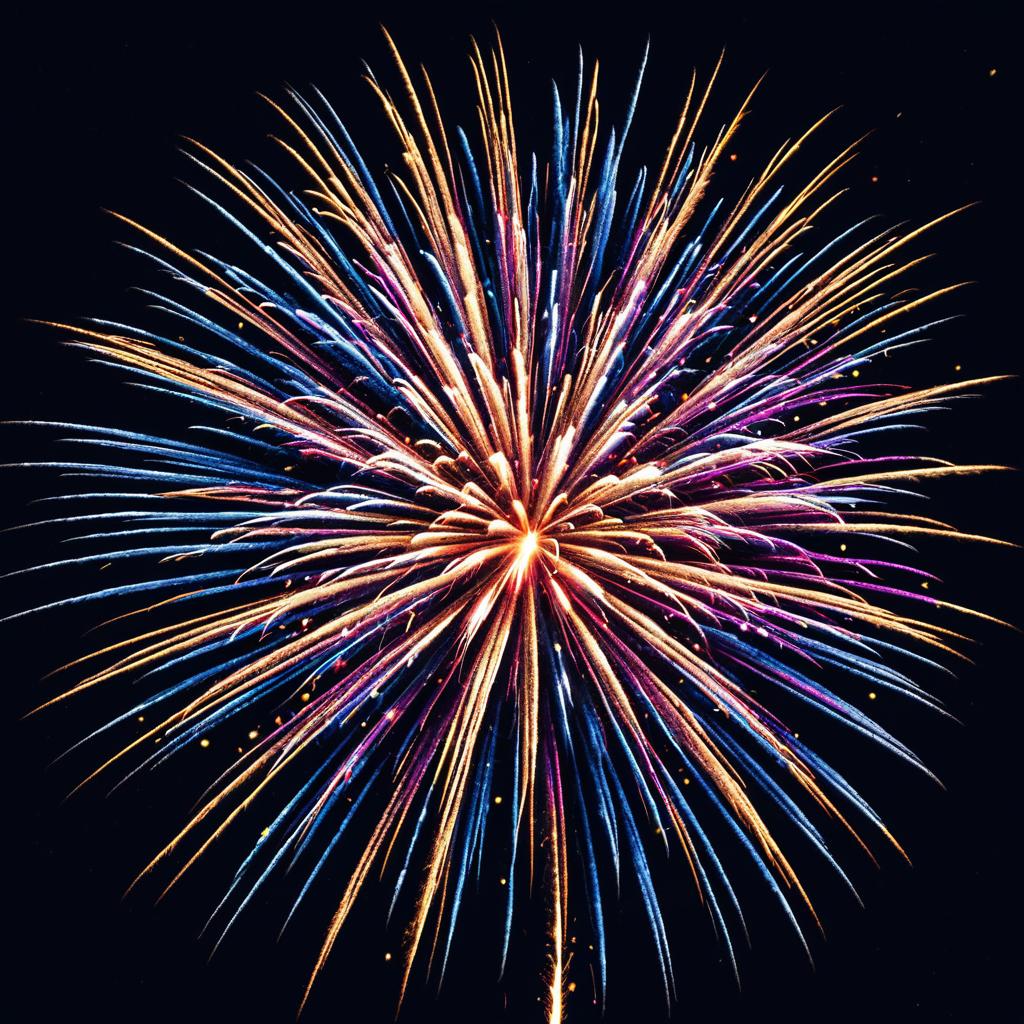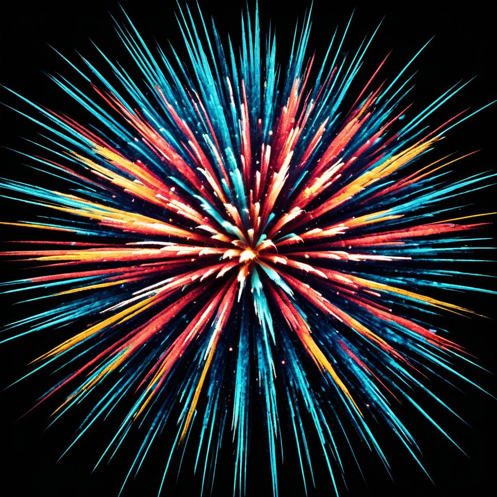 Vibrant abstract digital artwork of fireworks explosion, dazzling colors, dynamic composition, modern expressionism, vibrant, vivid tones, professional lighting