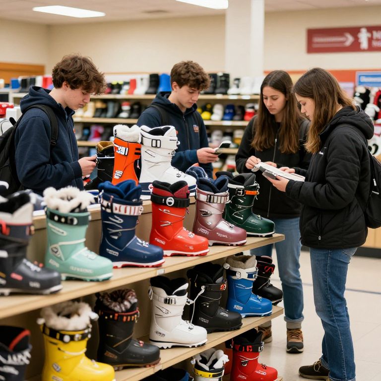 Students Exploring Colorful Winter Sports Footwear