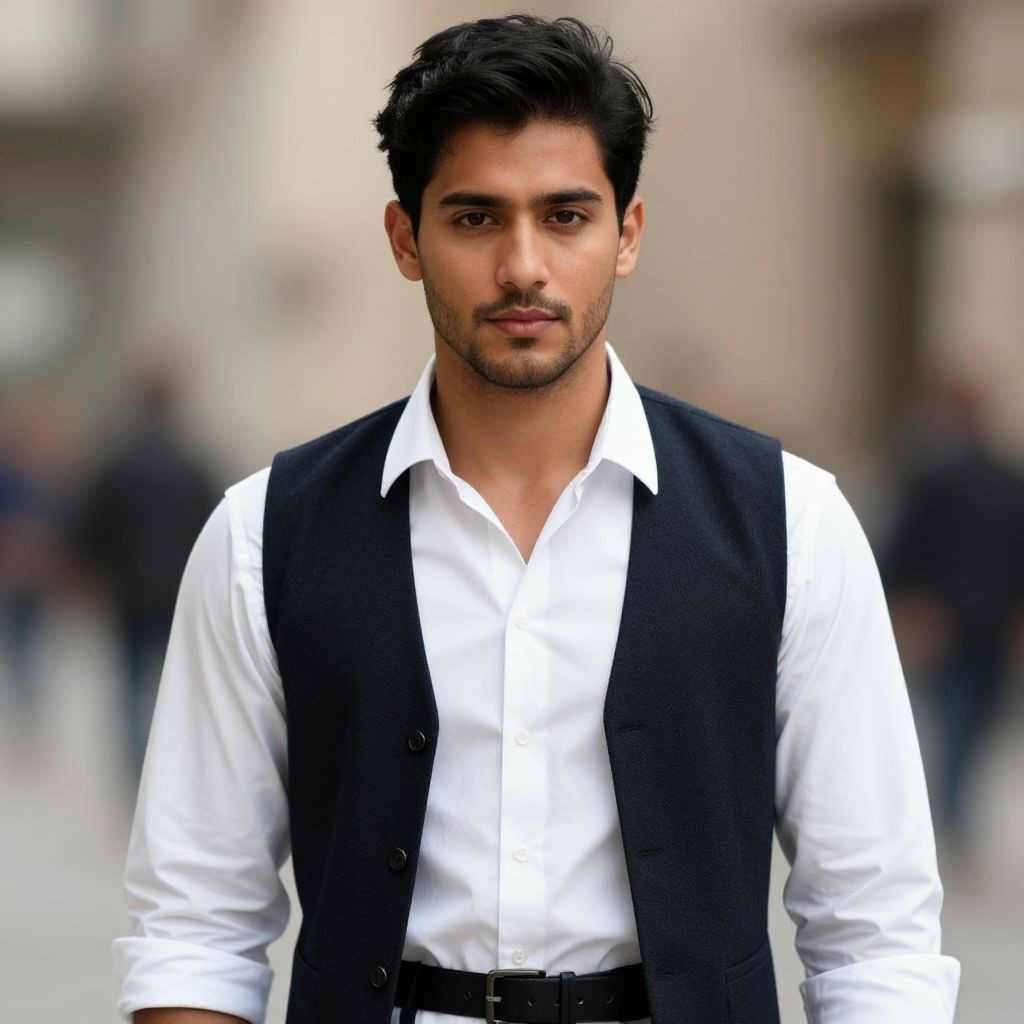 "coming america akeem costume, jewelry, male focus, necklace, 1boy, facial hair, robe, solo focus, beard, blurry background, blurry, crown, long sleeves Realistic photo of casual sexy person with pretty face"