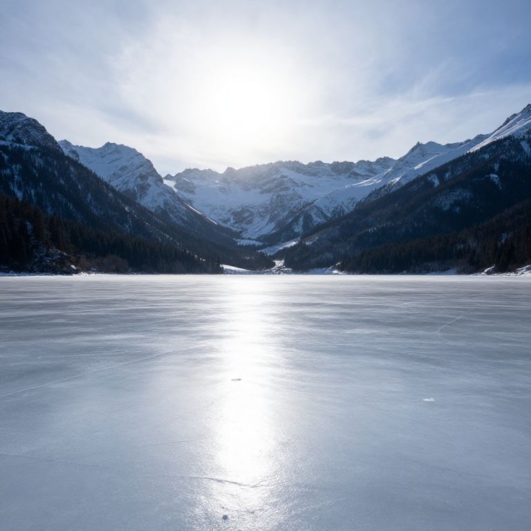 Frozen Lake with Snowy Mountains