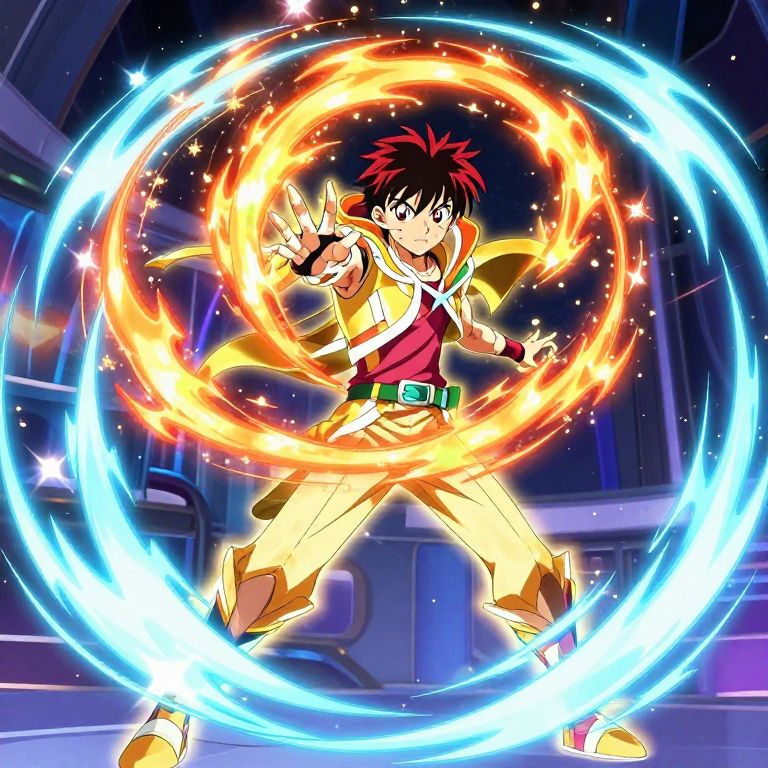 Anime transformation generator scene, vibrant magical sparkles and glowing effects surrounding a character mid-transformation, dynamic energy waves, stylized futuristic background, high detail anime style with bright colors and dramatic lighting