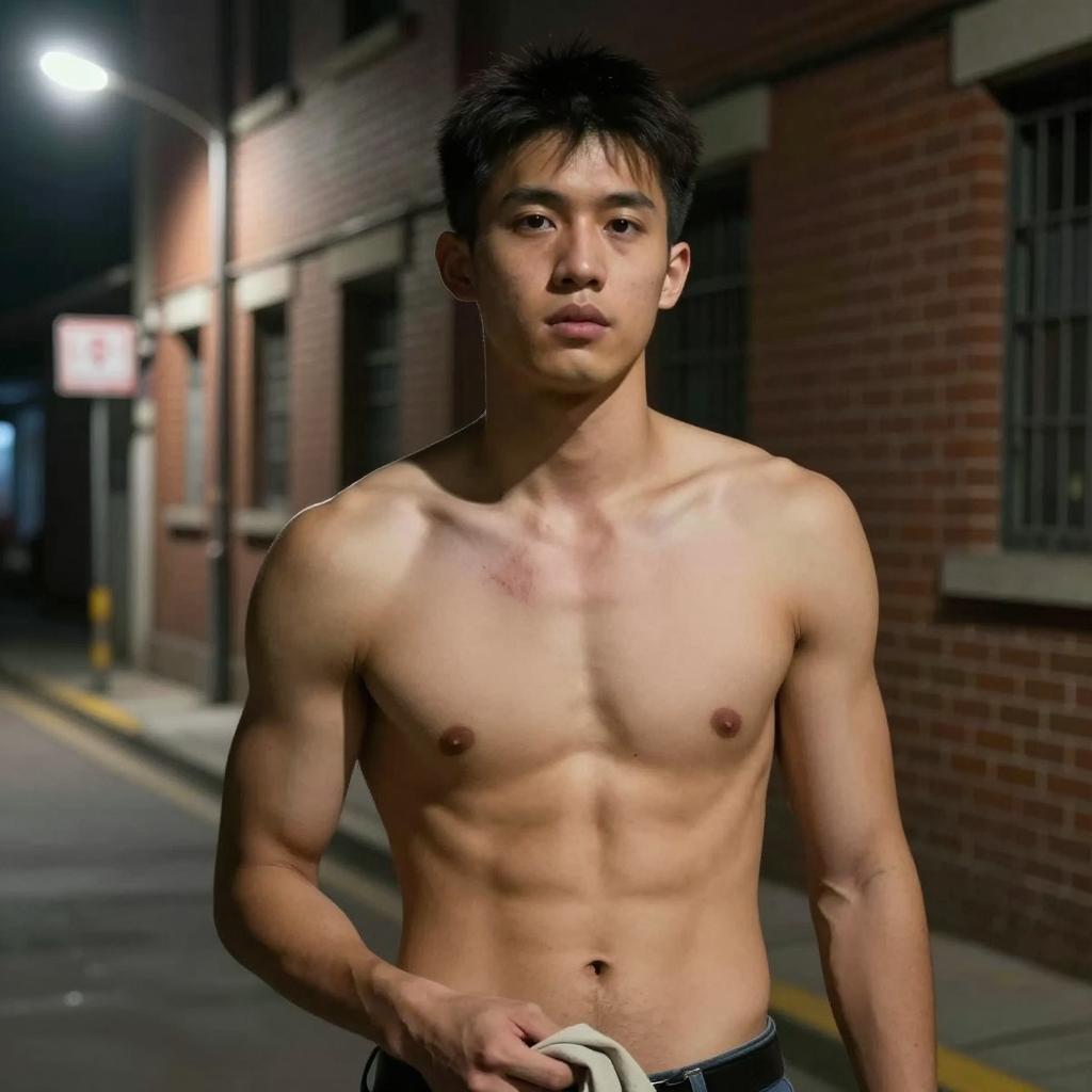 Intense Shirtless Man in Warm Light