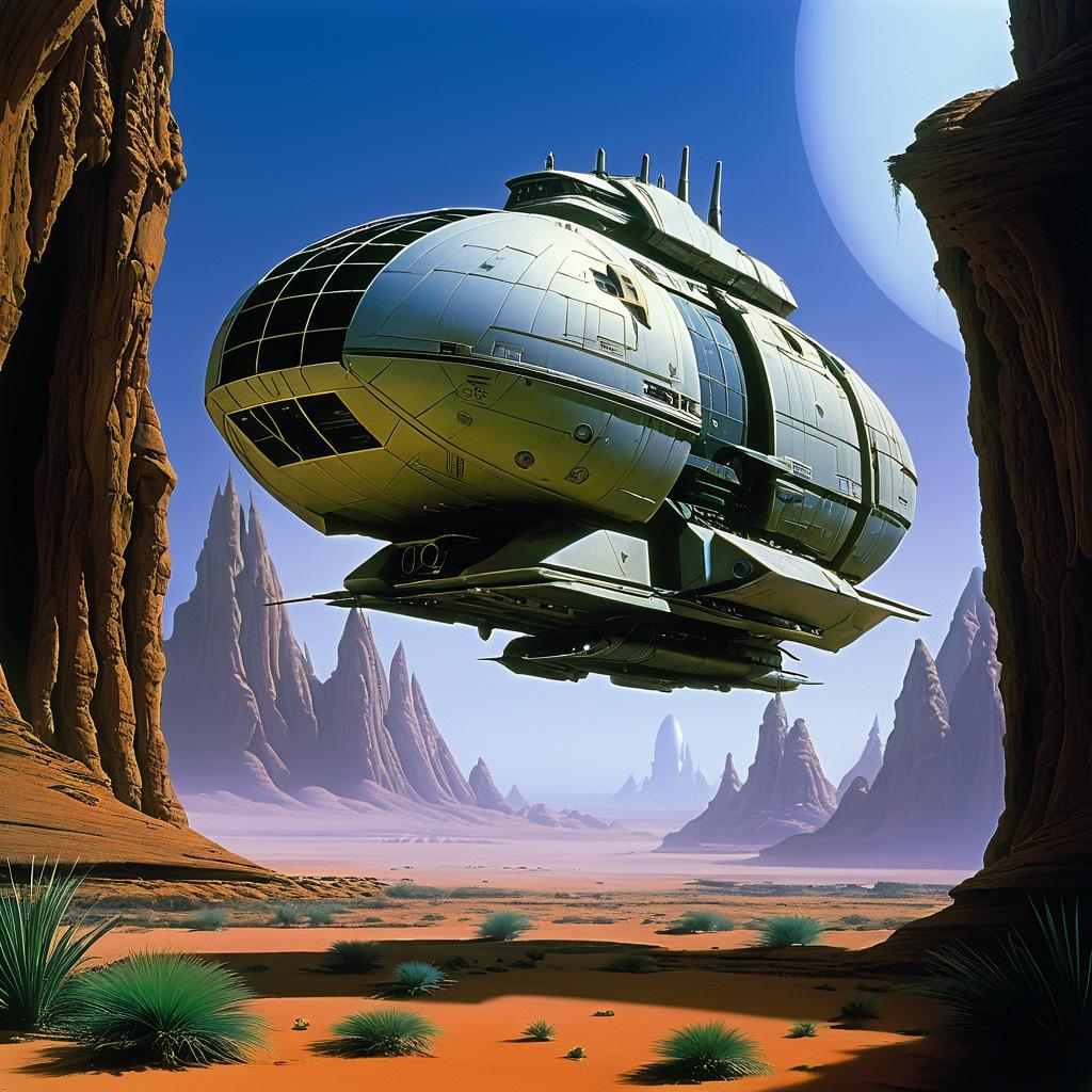 Small organic dropship lander by Jim Burns, cinematic matte painting style.
