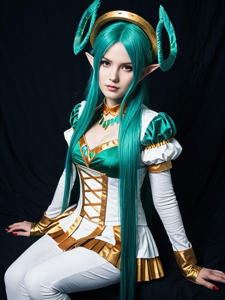 Sexy cosplay woman character wearing Neliel Tu Odelschwanck costume. Realistic photo. Jane Doe dressed as Neliel Tu Odelschwanck --sref 1404