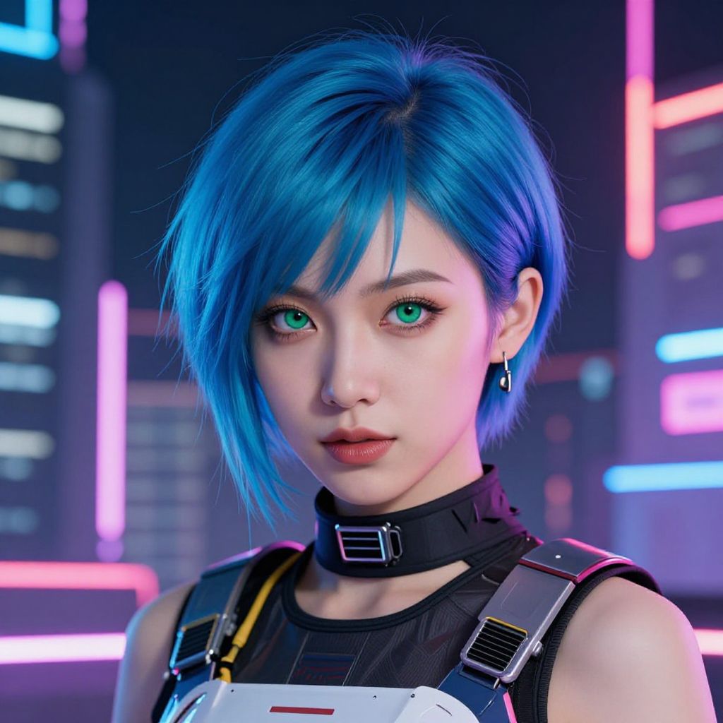 (masterpiece:1.1), (best quality:1.1), vibrant colors, 1 android girl, Sour Apple Green, cyberpunk, honkai impact, masterpiece, cinematic light, stunningly attractive, cowboy shot