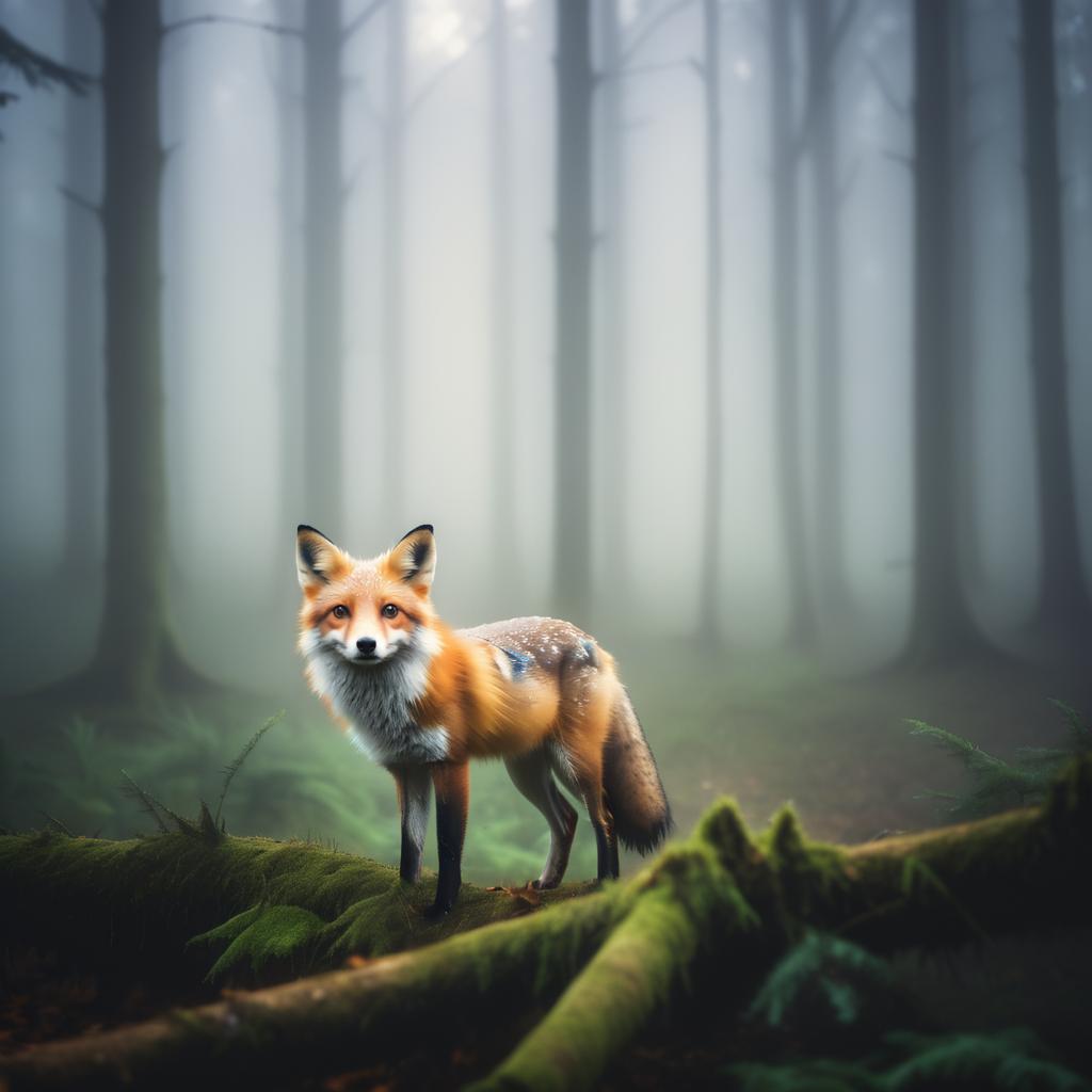 Fox in Misty Forest