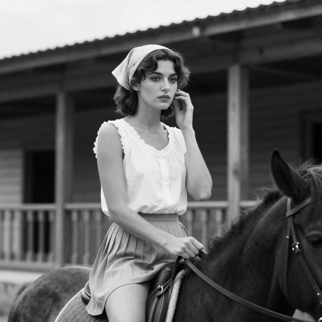 Determined Woman on Horse in B&W