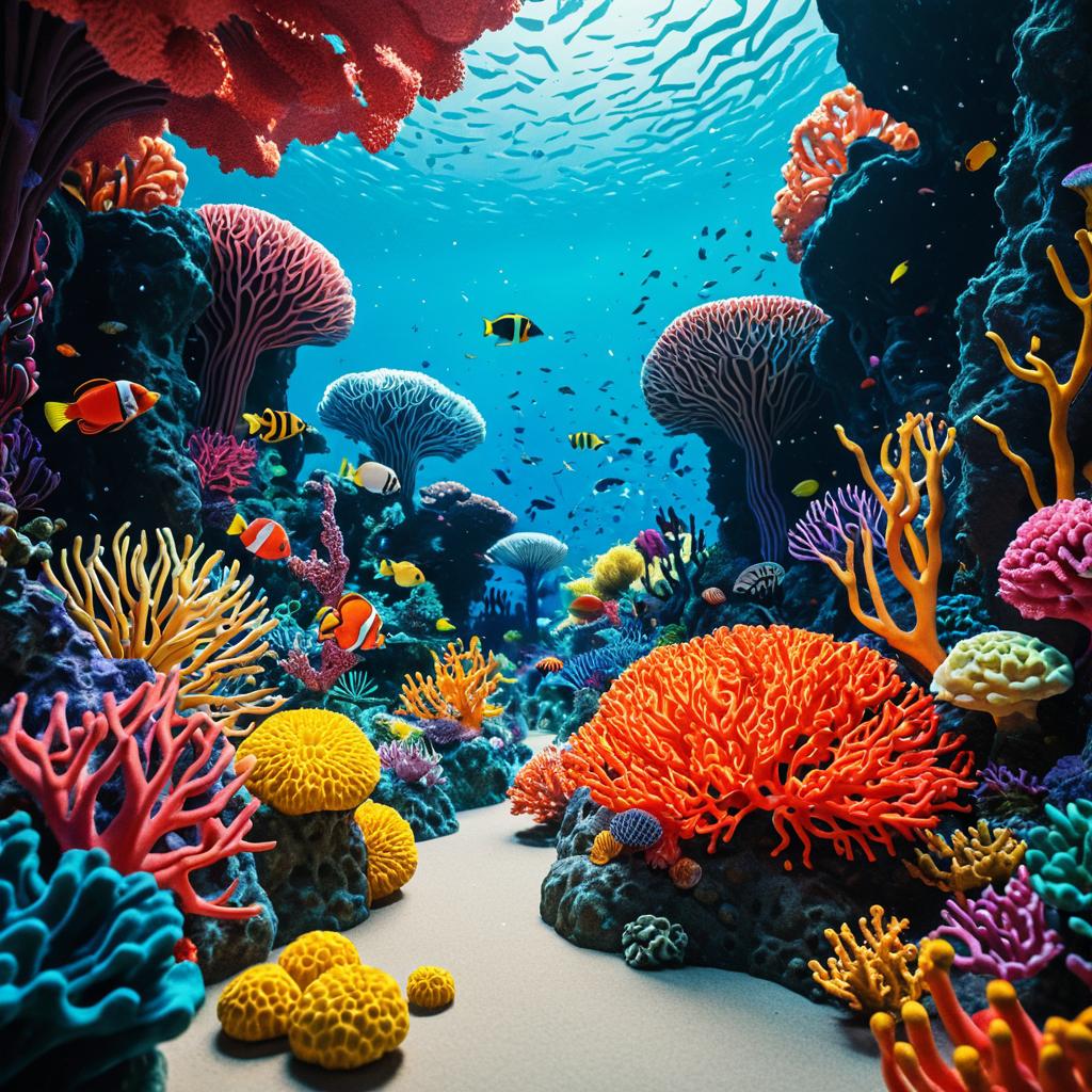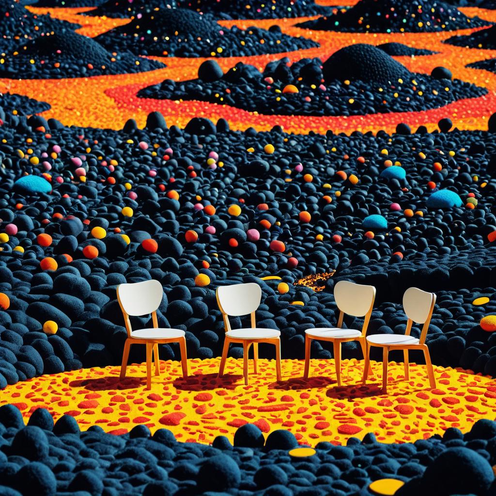 A surreal small miniature world of unique nature, rendered in the style of Henri Matisse. The setting is floating over a floating jagged volcano rim, with glowing intricate details and vibrant colorful nature that feels alien yet magical. Highly detailed with bold, clear colors and complex background layers, creating depth and intrigue. Photorealistic and smooth 3D render, cinematic lighting, art by Georgia O'Keeffe, Le Corbusier.