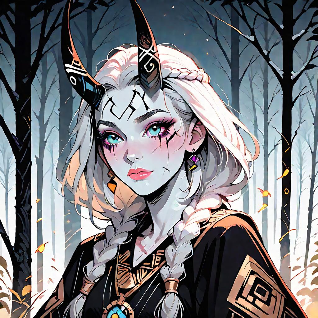 Close-Up of Tiefling Demon Woman with Broken Horn