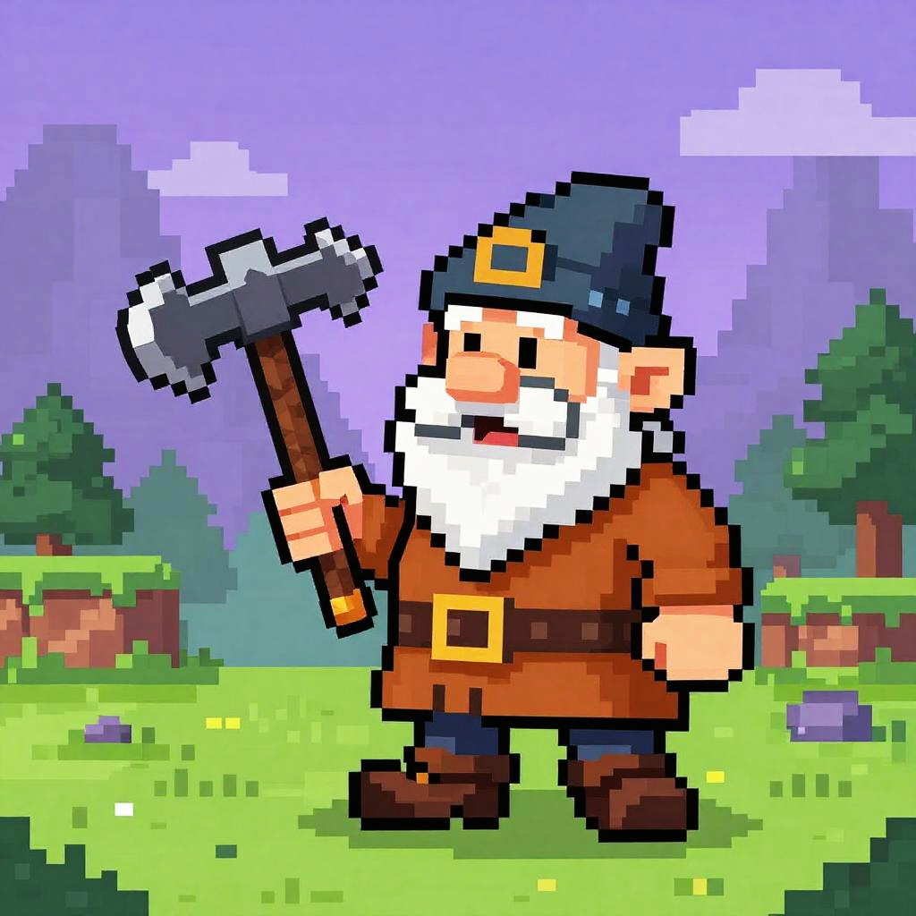 Dwarf Pixel Art Hero with Axe
