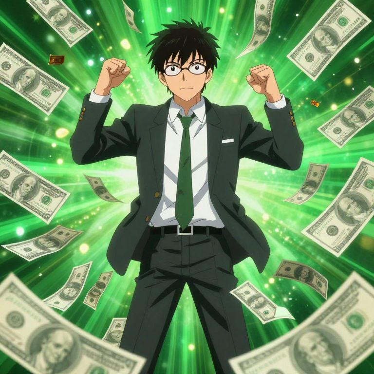 Corporate Espionage hitting big at casino money flying everywhere big celebration green color scheme inio asano style anime,