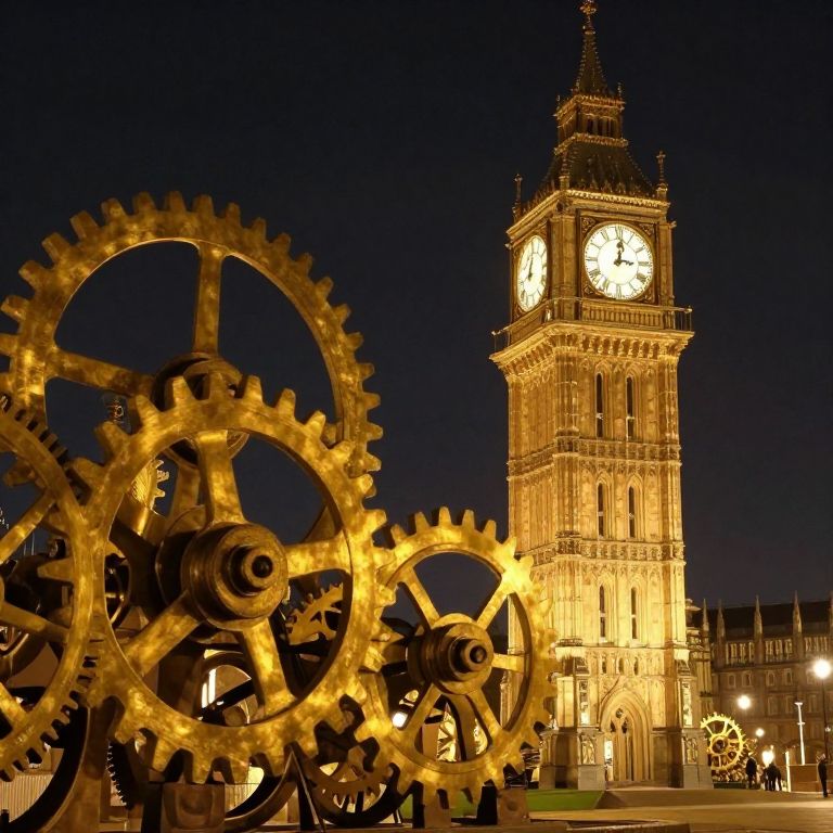 Time dissolves into a golden dreamscape, where the gears of eternity churn like liquid gold, and the backward chimes of the clocktower weave lullabies that echo the whispers of forgotten memories, inviting contemplation amidst the serenity of an infinite night.