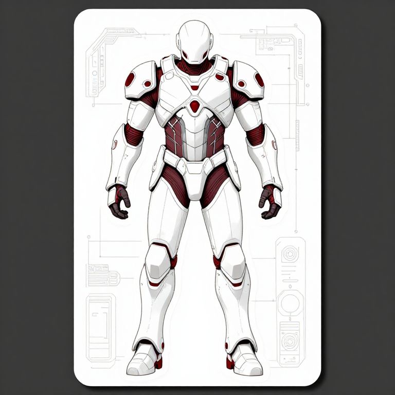 Sticker Sheet white space suit armor with deep red highlights, hard surface, sci-fi, technical diagram,