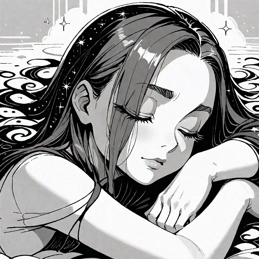 Score_9, score_8_up, score_7_up, score_6_up, score_5_up, score_4_up, pony fleetfoot and pinkamena diane pie sleeping, cosmic horror, black and white (kintsugi:0.4)